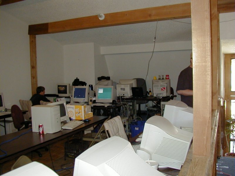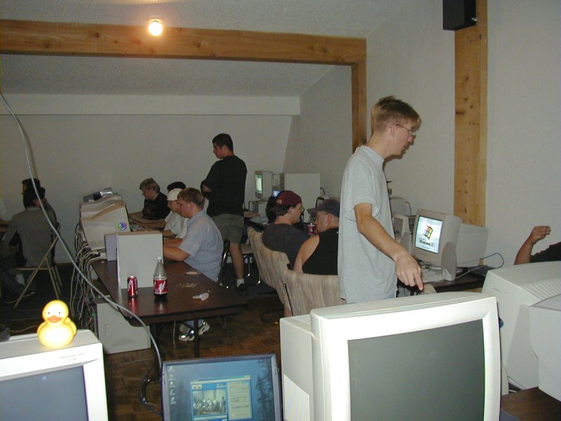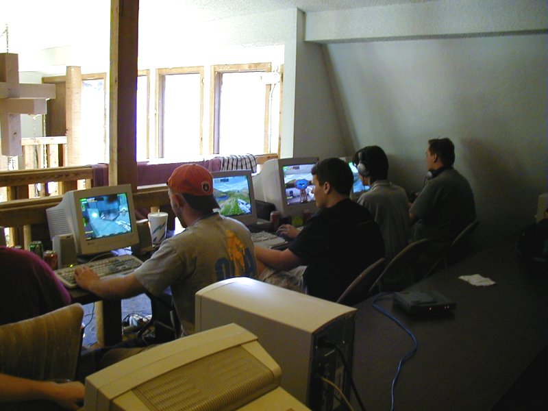 25 person LAN Party Well the new location at Deerfield Apartments worked out great. The A/C was wonderful and the space seemed to be fine. I hope everyone enjoyed the location and don't mind using it for future parties. Even though we have to pay rent for this location, it is minimal and worth having a clean place to play. If anyone has a comment about the new location please feel free to voice your opinion in the Bulletin Board. I know my wife and kid along with Scooters liked having access to the swimming pool and getting to visit. Unbelievably the power was not a problem at all (no breakers tripped, yahoo). We played some Quake III Rocket Arena and even got the Quakers to play some TRIBES :) I will work on getting some sponsorship for the next LAN Party so that I can get some prizes. I had a Battery Backup to give away at this party and it slipped my mind during the party. I randomly drew names from everyone that attended when I got home and Lifesaver was the winner. I do not have Lifesavers real name or email so get him to show up at the next party and Ill give him the Battery Backup then. I have one more Battery Backup to give away at HubLAN18. |